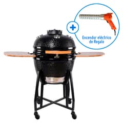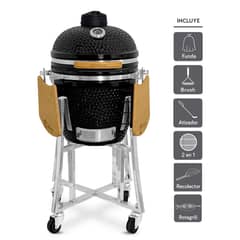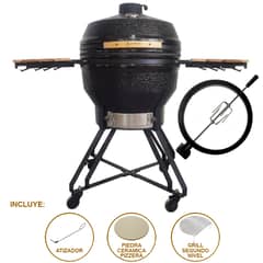 Kamado 16 Negro Stone Clásico Para Sobre-Mesada Con Soporte - Funda - Herramientas