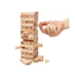 Jenga de Madera 54 Piezas Numeradas con Dados